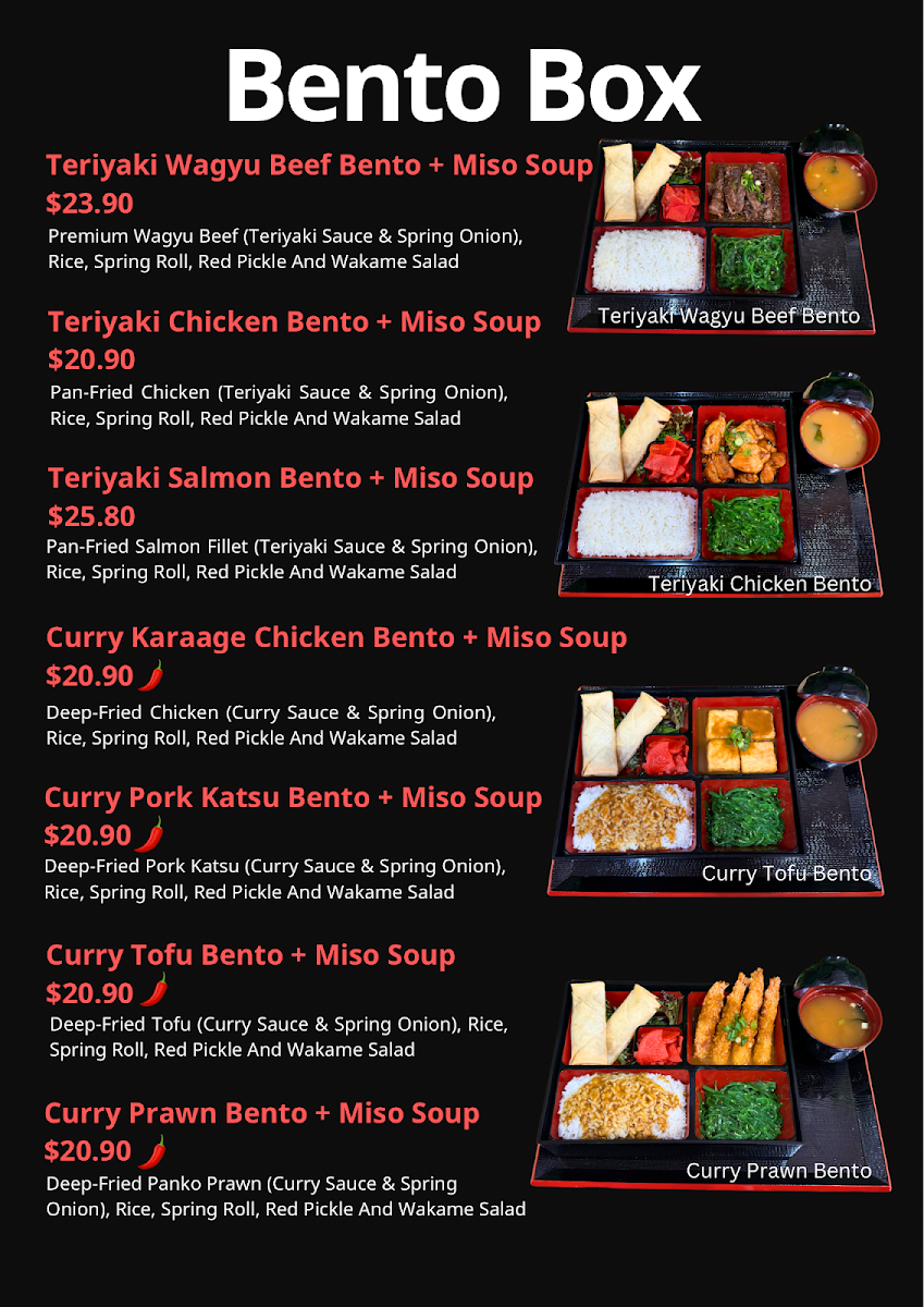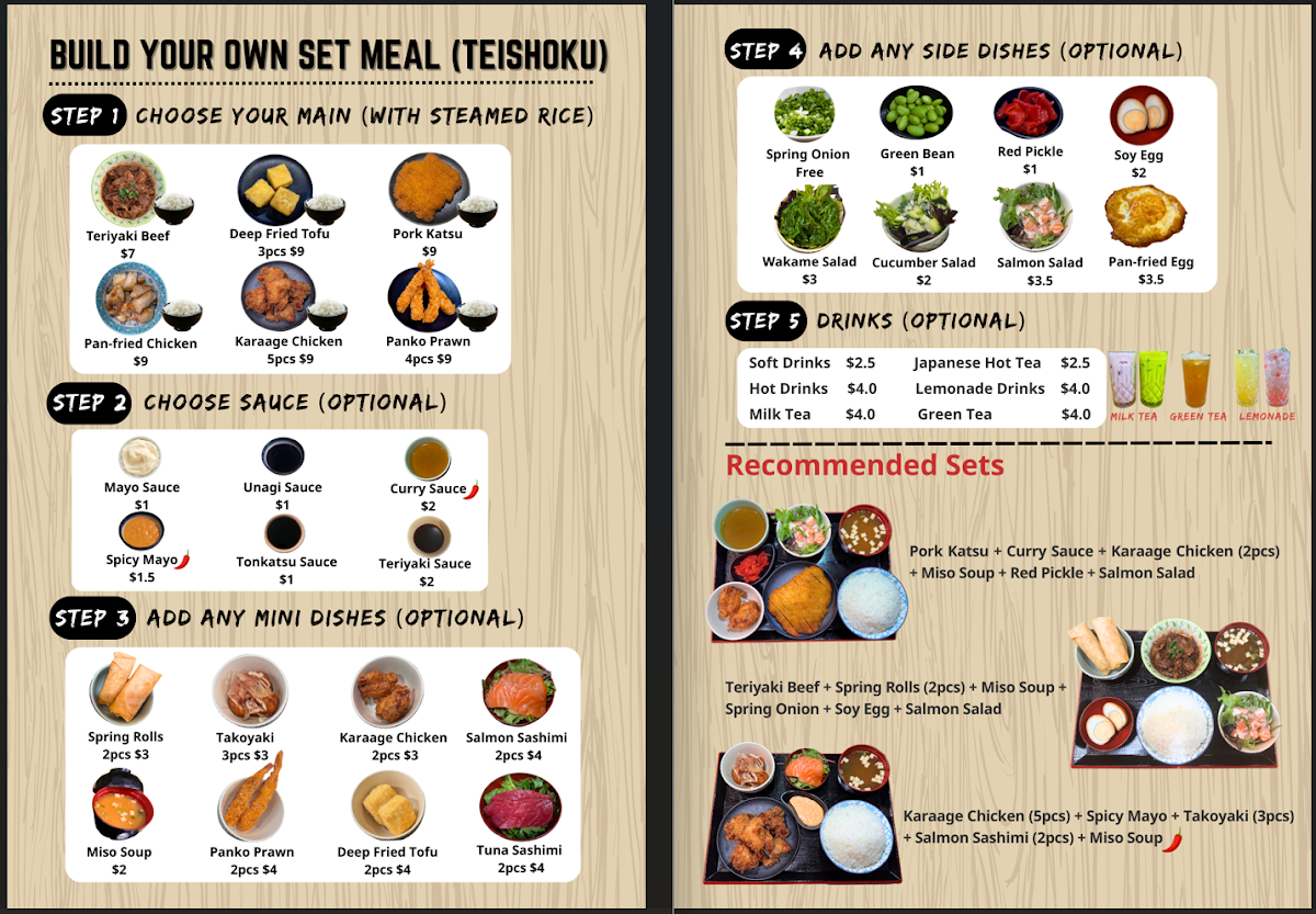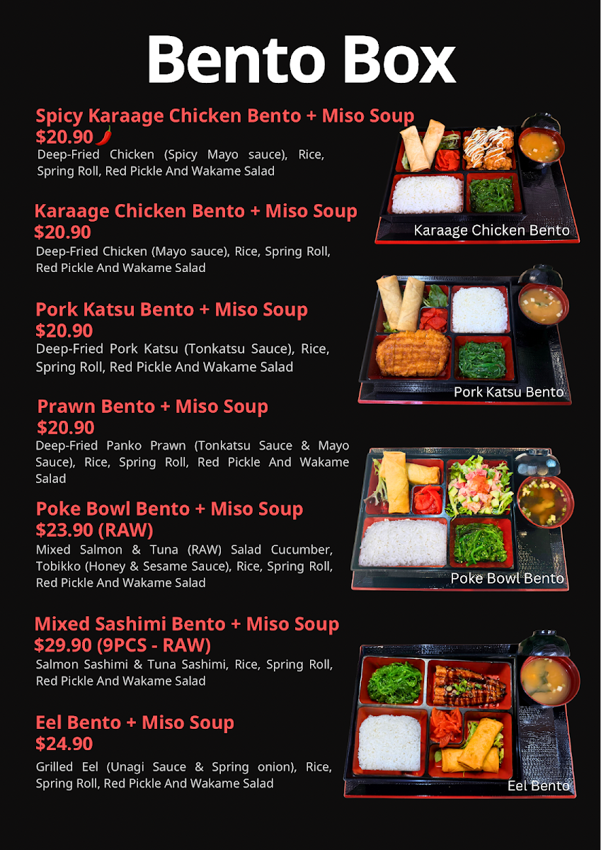 Plain Inari (1pc) Seafood Salad Inari (1pc) Seaweed Inari (1pc) Ebi Nigiri (1pc) Salmon Nigiri (1pc) Crab Stick Nigiri (1pc)