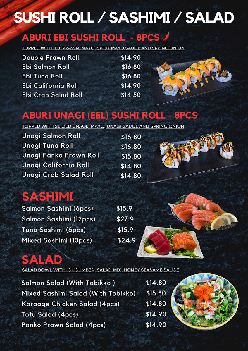 Grilled Salmon Nigiri (2pcs) Grilled Unagi Nigiri (2pcs) Spicy Grilled Salmon Nigiri (2pcs) Grilled Ebi Nigiri (1pc) Grilled Crab Stick Nigiri (1pcs)