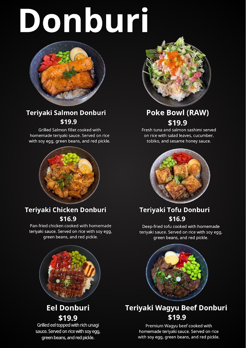 4 don + 2 sushi roll + 4 drinks + 4 entrees + 1 salad salmon salad